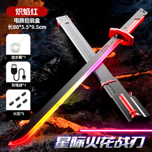 火花光剑发光宝剑喷雾冒火拔剑双刃激光剑男孩儿童玩具爆款网红