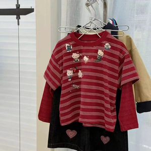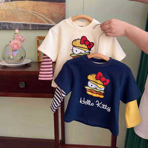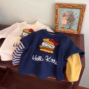 女童秋季长袖卫衣2025宝宝新款洋气时髦假两件T恤可爱圆领上衣潮