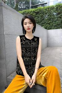 南油批发2025年秋季新款 重工定位绣花真丝丝绒马甲 休闲时尚百搭