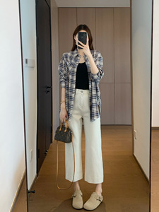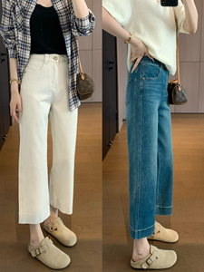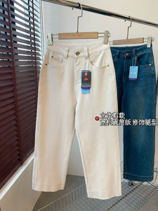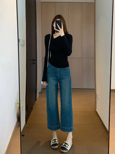 立裁四面弹 柔软有筋骨竖纹肌理感高腰九分直筒阔腿牛仔裤W9802Y
