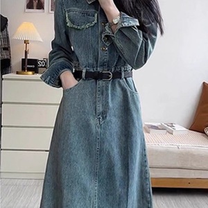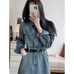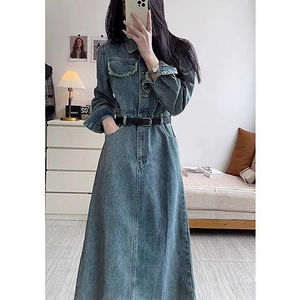 韩系高个子复古牛仔连衣裙潮女春秋新款气质收腰显瘦百搭法式长裙