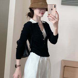 撞色假两件POLO衫2025秋季新款韩版叠穿免搭配休闲显瘦上衣女