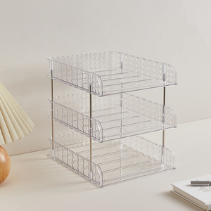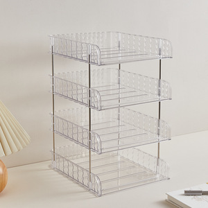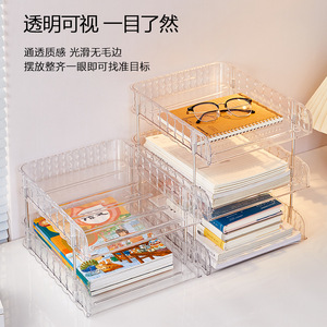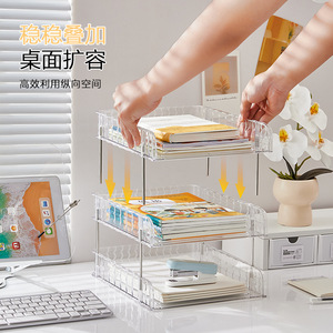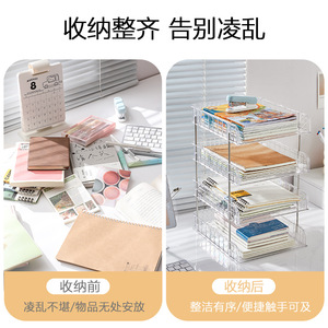 办公桌面文件收纳盒办公室置物架多层透明书本文件A4纸分类收纳架