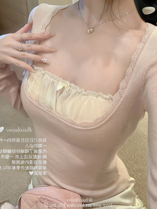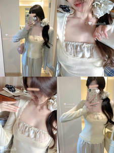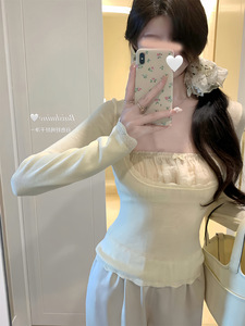 白水籹 温柔氛围感 褶皱纱打底花边圆领毛针织衫女秋季抹胸内搭