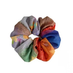 波西米亚风文艺复古原创不规则拼接苎麻手工大肠发圈绿蓝黄色发圈
