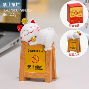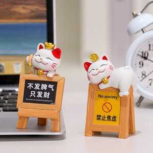 卡通解压招财猫提示牌工位桌面小摆件可爱小猫打工人治愈系警示牌