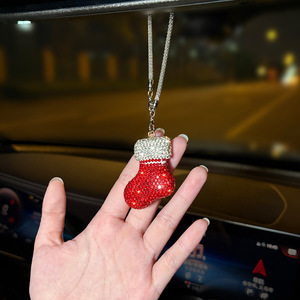 新款欧美圣诞节汽车挂件雪人圣诞老人帽圣诞树镶钻卡通挂饰礼物