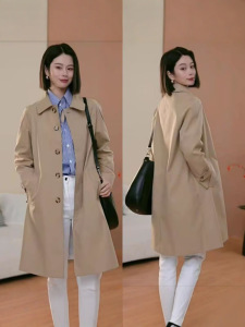 气质高级感中长款风衣外套女2025秋季新款韩版宽松洋气单排扣大衣