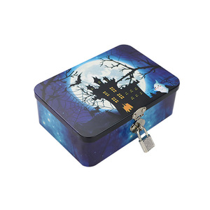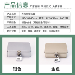 长方形马口铁盒现货玩具化妆品收纳盒带密码锁翻盖盲盒铁盒大号