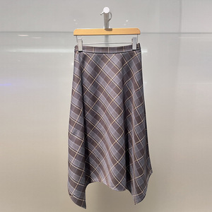 2025秋季新款复古摩登格纹不规则长款半身裙女5G9141551