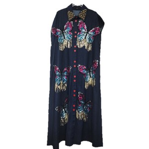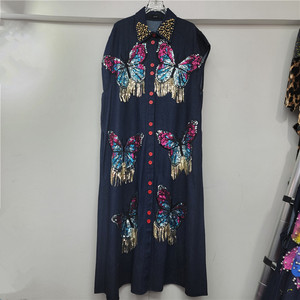 设计感2025秋新款女牛仔连衣裙宽松A字长裙重工蝴蝶绣花时尚遮肉