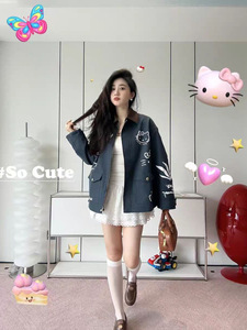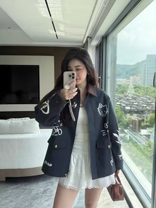 卡通减龄韩版收腰显瘦休闲外套风衣夹克翻领百搭时尚2025秋季潮流