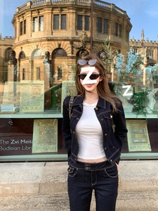 美式复古蓝色牛仔外套女秋季2025新款小个子短款韩版修身显瘦上衣