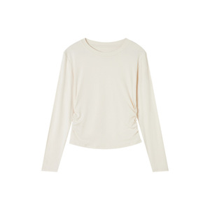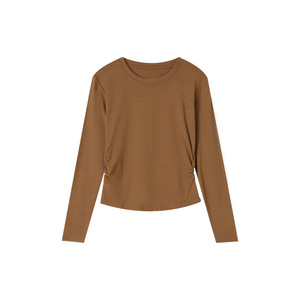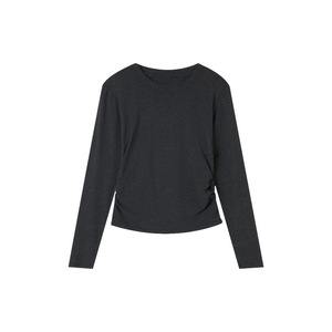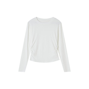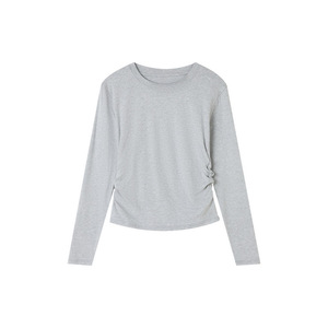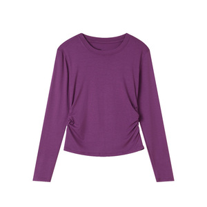 2025早秋新品正肩圆领打底衫女内搭修身褶皱收腰打底上衣长袖0015