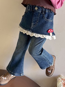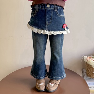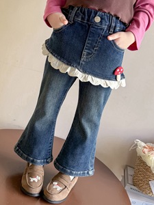女童牛仔裤子春秋装新款洋气时髦宝宝休闲长裤童装儿童屁帘喇叭裤