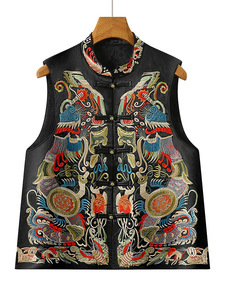批发一件代发2025秋季新款民族风重工刺绣马甲复古盘扣坎肩高级感