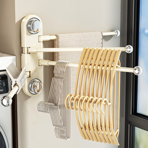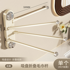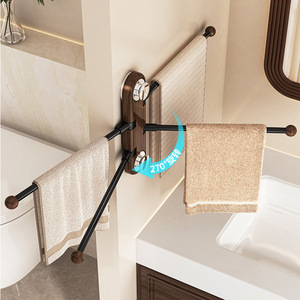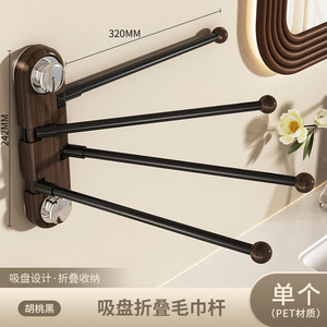 跨境吸盘旋转毛巾架免打孔卫生间多杆折叠浴巾挂架置物架毛巾挂杆