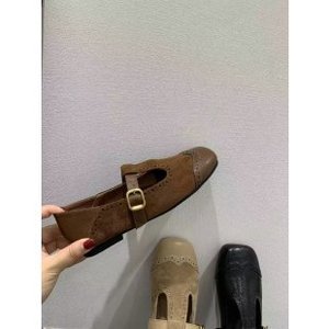 2025年秋季复古棕色方头玛丽珍鞋芭蕾舞鞋仙女风平底女鞋浅口单鞋