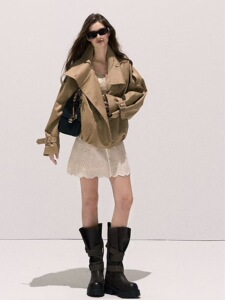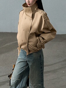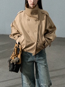 OAKMOO/立领廓形风衣夹克秋新款双排扣短外套宽松上衣女