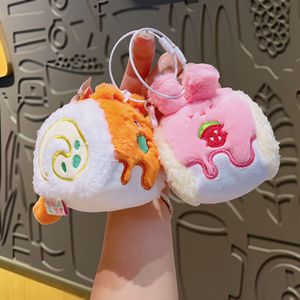 新款毛绒蛋糕创意钥匙扣可爱瑞士卷玩偶卡通包包挂件闺蜜礼物批发