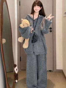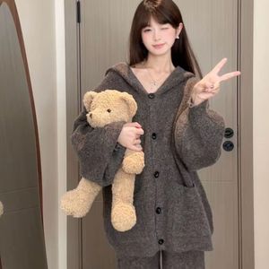 濮院毛衫厂 2025秋冬新款复古慵懒宽松连帽新款简约休闲两件套女