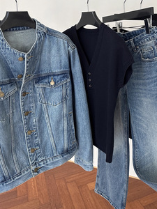 靓依轩 美式复古斜纹棉质做旧感时髦牛仔衣夹克式立领VTG外套女潮
