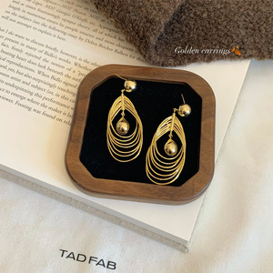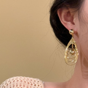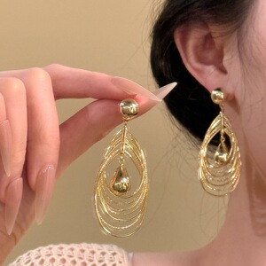法式高级感金色多层水滴长款耳环女轻奢度假风耳钉独特夸张耳饰