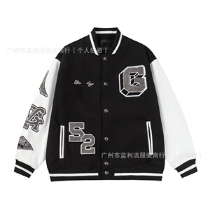 跨境 纪家GVC字母logo贴皮刺绣休闲宽松男女同款棒球服夹克外套