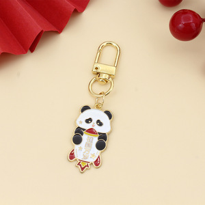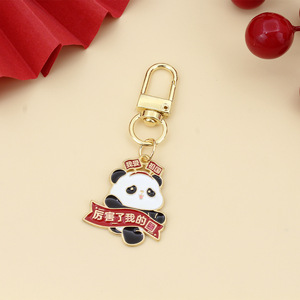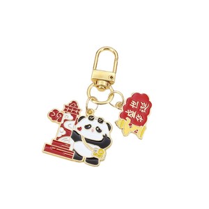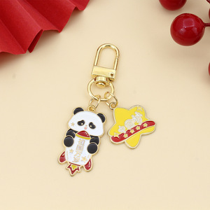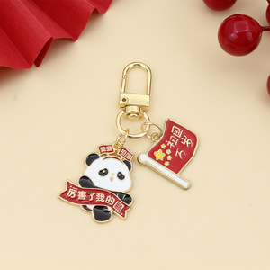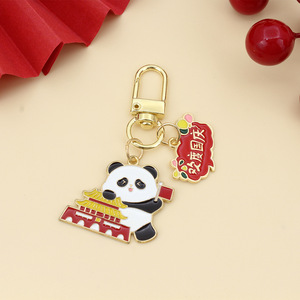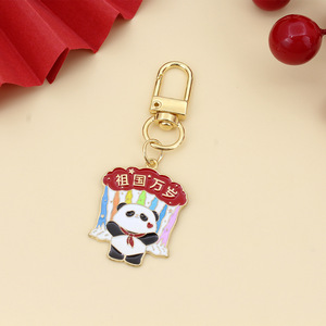 可爱国庆熊猫红色钥匙扣挂件我爱中华欢度国庆祝福语节庆合金礼品