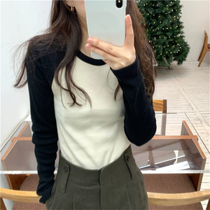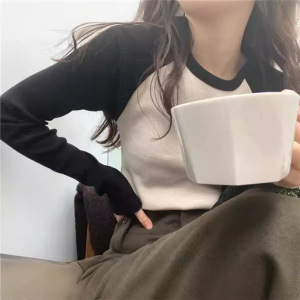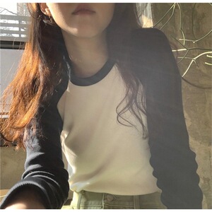 美式复古螺纹撞色拼接插肩长袖T恤2025秋季新款修身上衣女装88646