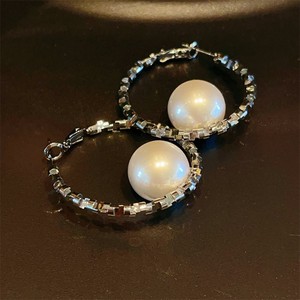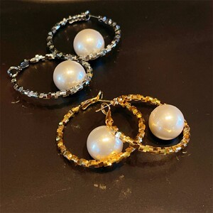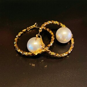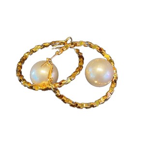 夸张大气碎银几两珍珠耳环新款高级感C形圈耳环个性时尚麻花耳饰