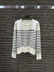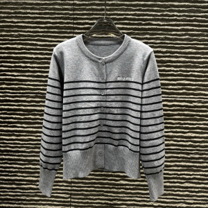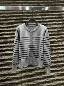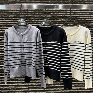 mm25秋冬新款韩系学院风条纹字母刺绣圆领针织开衫