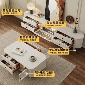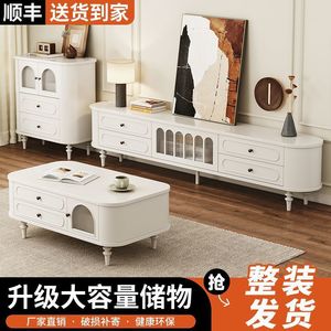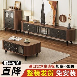 新中式电视柜简约中古风电视柜实木法式复古家居茶几二件套侧边柜