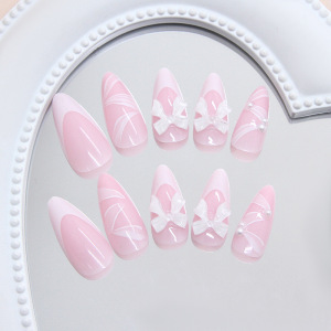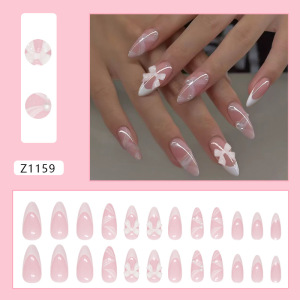 气质法式飘带蝴蝶结仙气甜美百搭欧美ins风可拆卸美甲24片