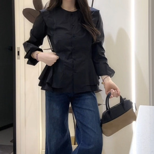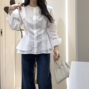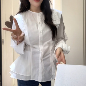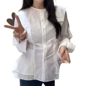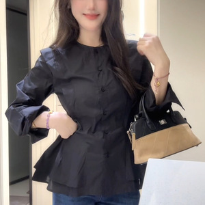 2025秋冬新款百搭显瘦法式气质收腰荷叶边下摆长袖衬衫白色黑色