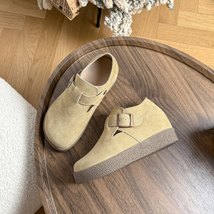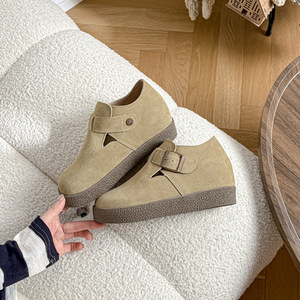 7CM内增高勃肯鞋女真皮全包小个子单鞋2025秋新款高跟厚底博肯鞋