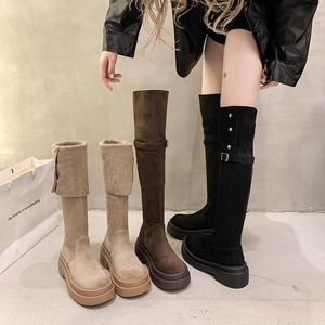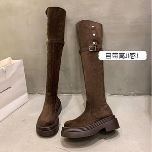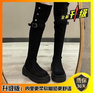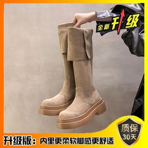 两穿翻折厚底长筒靴子女2025年秋冬季新款粗跟过膝骑士靴春秋款男
