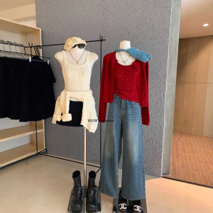 WGWE7166法式松弛感纯欲显瘦针织开衫+温柔风吊带背心两件套套装