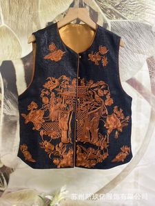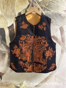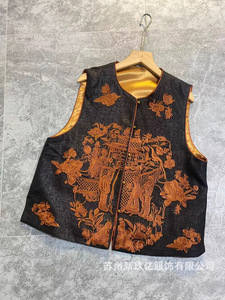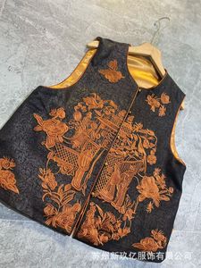 2025新款民族风复古圆领盘扣马甲女文艺时尚刺绣提花宽松背心坎肩