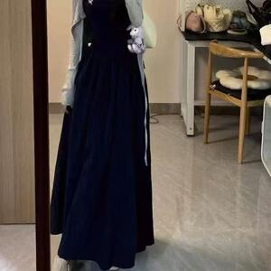 2025新款款韩系慵懒风绑带开衫收腰显瘦藏蓝色无袖背心连衣裙套装