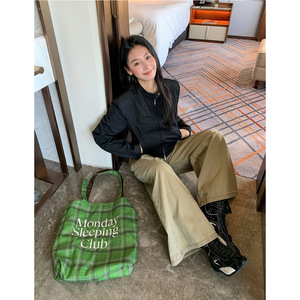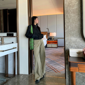 洗褪面料网红爆款YKK2025秋冬新款高腰显瘦设计宽松阔腿休闲裤女