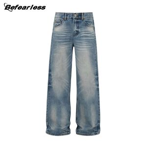 美式复古17.6oz重磅水洗猫须微喇牛仔裤潮牌男女宽松直筒休闲长裤