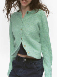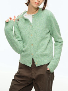 CountryMomet羊毛混纺/复古圆领针织开衫秋冬外套绿色毛衣女外搭