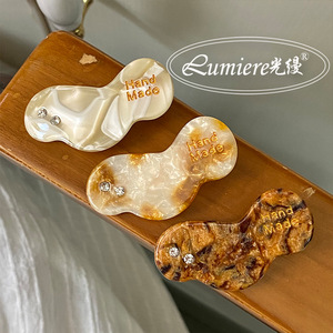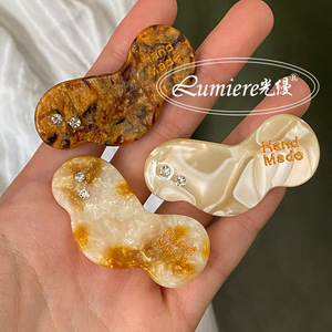 奶酪黄鎏金豹纹镶钻爱心醋酸边夹日韩ins新款时尚洋气秋冬发卡女