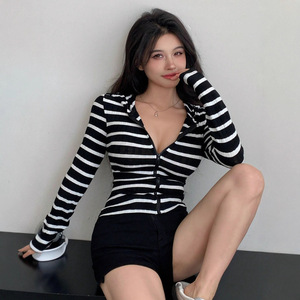 2025秋款跨境欧美亚马逊外贸女装上衣撞色坑条女式长外套