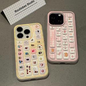 创意KT猫小新苹果16PROMAX手机壳15PRO键盘iPhone15新款13软壳14P
