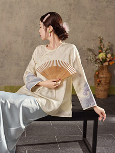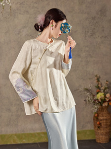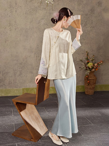 秋季圆领气质新款提花设计上衣新中式重工袖口刺绣高定衬衫 N7028