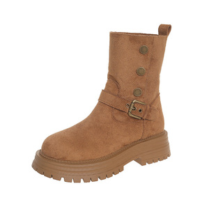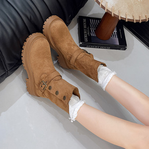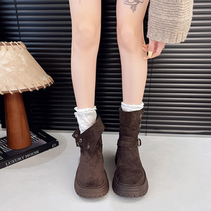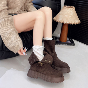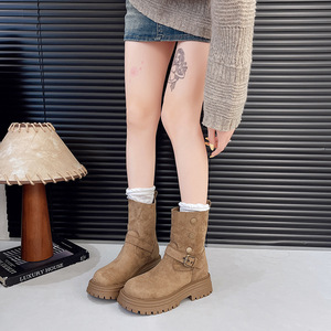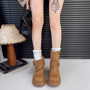 英伦风复古两穿皮带扣马丁靴女2025年新款厚底百搭西部牛仔瘦瘦靴