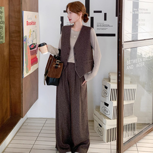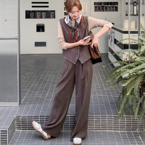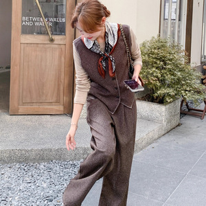 轻熟风复古小香风西装马甲套装女早秋新款休闲显瘦气质长裤三件套