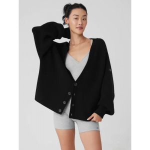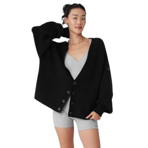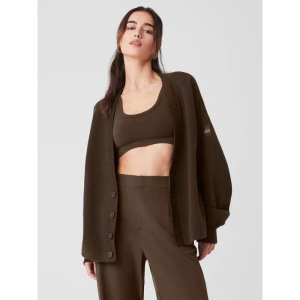 高品质 alo原标 休闲百搭针织长袖开衫毛衣女秋冬V领外套